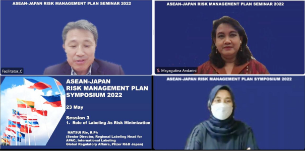 Jakarta, 23-25 Mei 2022, Badan Pengawas Obat dan Makanan bersama Pharmaceuticals and Medical Devices Agency (PMDA) Jepang dan Fakultas Farmasi – Universitas Indonesia menyelenggarakan virtual simposium dan seminar tentang Risk Management Plan ( -