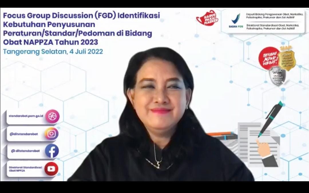 Dalam rangka perencanaan penyusunan peraturan/standar/pedoman di bidang obat, narkotika, psikotropika, prekursor, dan zat adiktif tahun 2023, Direktorat Standardisasi Obat, Narkotika, Psikotropika, Prekursor, dan Zat Adiktif mengadakan FGD pada tangg -