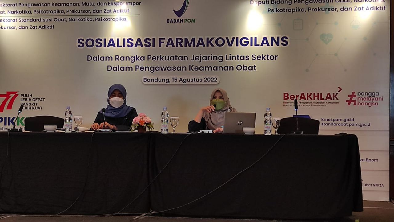 SOSIALISASI FARMAKOVIGILANS DALAM RANGKA PERKUATAN JEJARING LINTAS SEKTOR DALAM PENGAWASAN KEAMANAN OBAT Bandung - Sebagai upaya peningkatan pemahaman pelaku usaha terhadap Peraturan Badan POM No. 15 Tahun 2022 tentang Penerapan Farmakovigil -